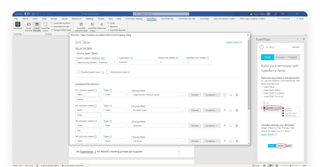 Titan Docs allows you to build custom dynamic documents from Salesforce with the robust Doc Gen feature. The no-code approach to designing and generating documents is brought to you by Titan’s powerful drag-and-drop builder to assist with all your Titan for Salesforce Doc Gen requirements.