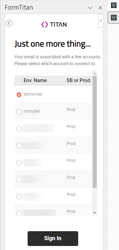 You are now signed in to the Form Titan Word add-in.