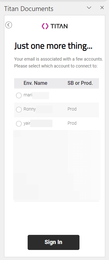 If your email is associated with a few accounts, please select the account by using a radio button and then select the Sign In button.