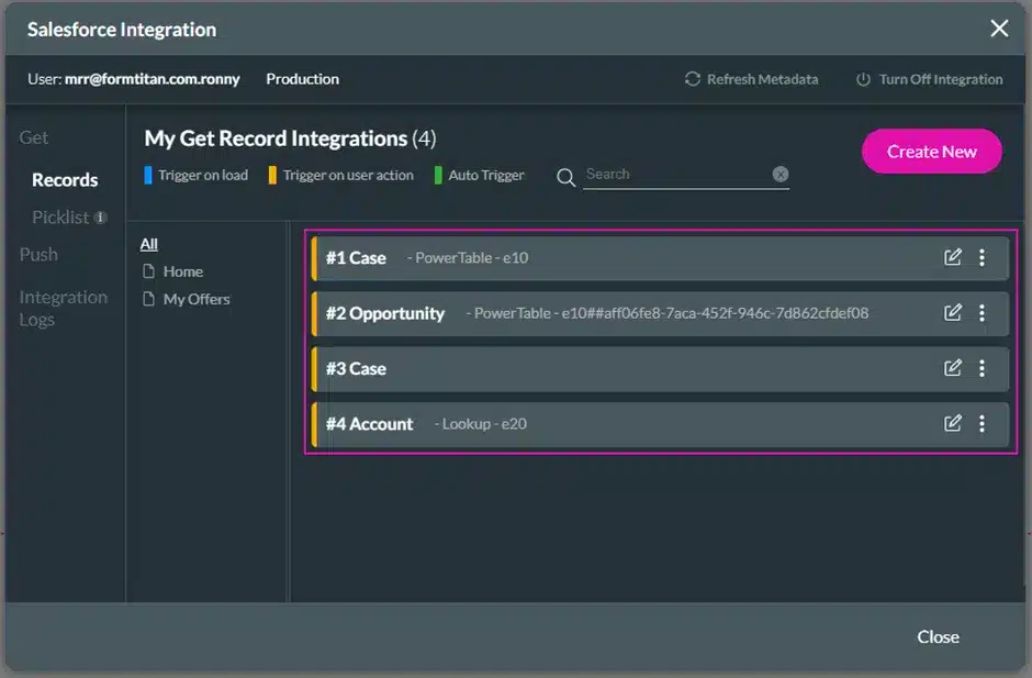 | Column G | This is the record on the Salesforce Integration screen. Project Settings > Salesforce > Records ![]() |