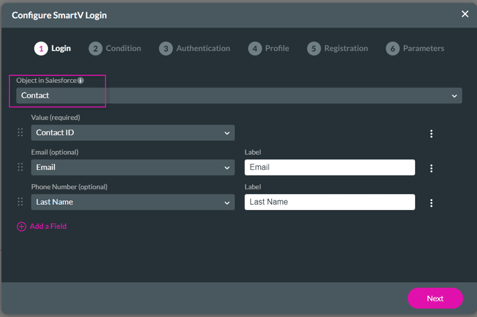 In this example, column G refers to the Salesforce object that was used when doing the SmartV configuration: