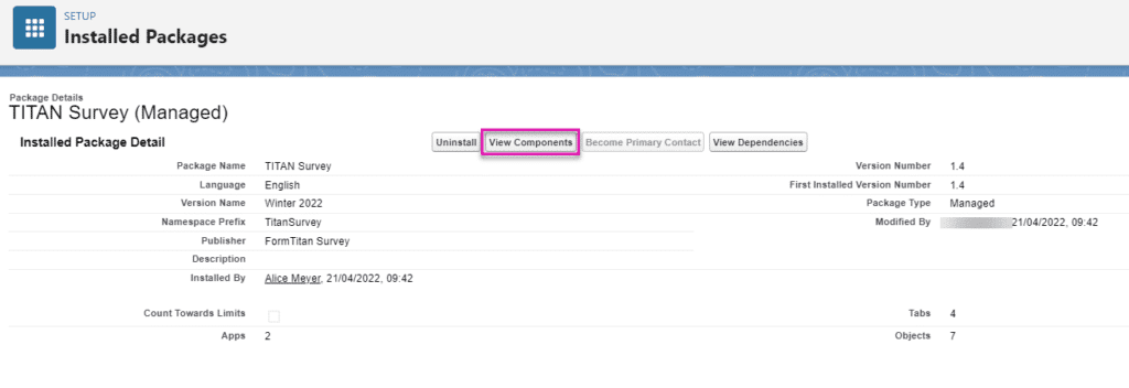 The Titan Survey Package will enable you to use Titan Survey. The Titan Survey Package for Salesforce contains metadata (custom objects and fields that store all Titan Survey data) and automations for Titan Survey.