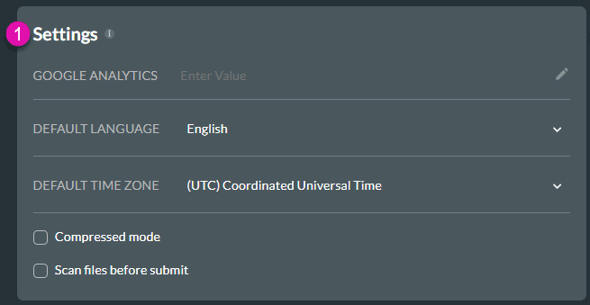 Use the Account Settings Menu to control your profile and configure security measures. In the Account Settings, you can set Google analytics, SSO Enabler, Custom Preloader, and Enable Support.