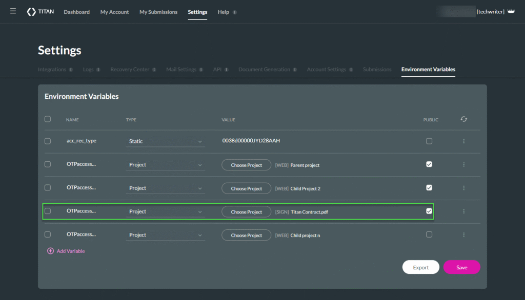 The environment variables are shared across your Titan environment and can be accessed from any Titan Sign project. They can be used to redirect to a URL.
