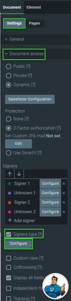 The Signers section changes and Tracking is automatically switched on: