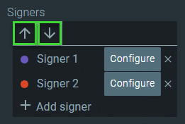 Each signer is assigned a unique color. This color will be used when you drag any elements to the document for this signer. The element’s color will correspond with the signer’s color.