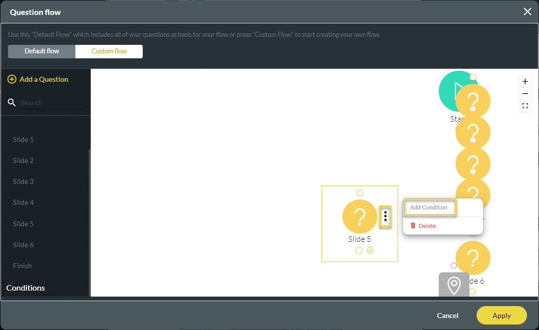 Set conditions for slide flow. With just a few clicks, set up conditions to help users easily navigate through surveys depending on the answers provided.
