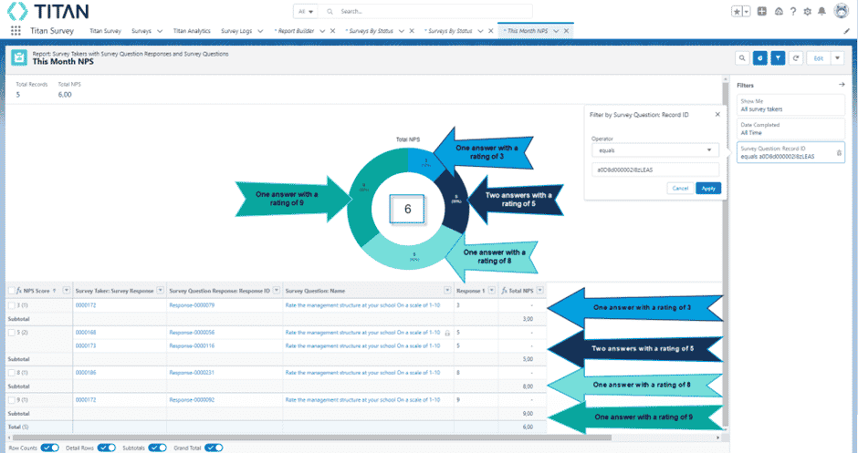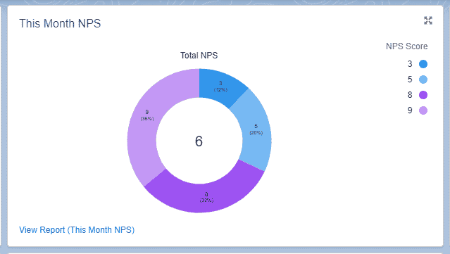 On this dashboard panel, you can see all the activities for this week. The NPS Score is shown in the top right corner. The NPS looks at a single question that has to be a rating or number question (for instance, from 1 to 10).