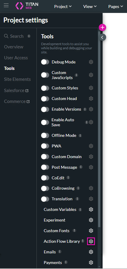 Every action in Titan creates an actions flow. Titan Web offers the Action Flow Library where you can save action flows for re-use anywhere in the project.
