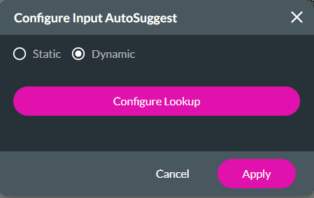 The Allow Autosuggest option is available for the Text elements. Use the Allow Autosuggest function to display suggestions upon selection. The suggestions populate statically or dynamically from a configured source that links to Salesforce, which can assist with efficient form completion.