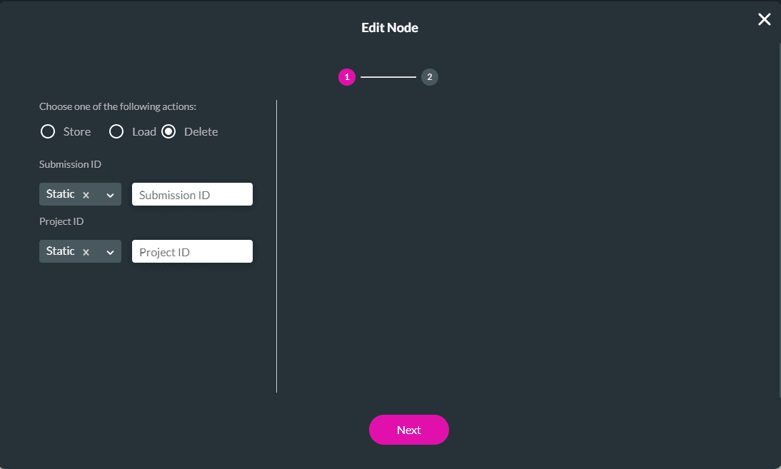 You may want to delete a submission, that is the submission record and the JSON submission file in Salesforce. You can delete the submission and free up storage space in Salesforce.