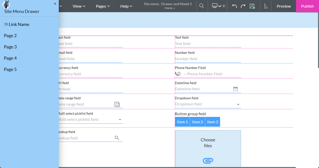 On a project with multiple pages, you can add the navigation links to these pages in the drawer: