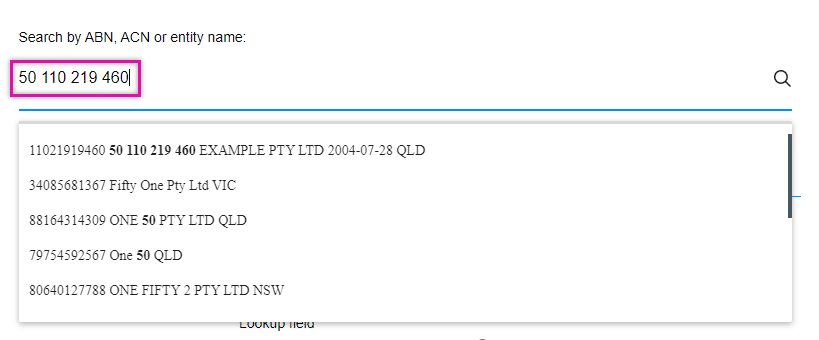 The search results related to the input data in the lookup field will be returned in bold.