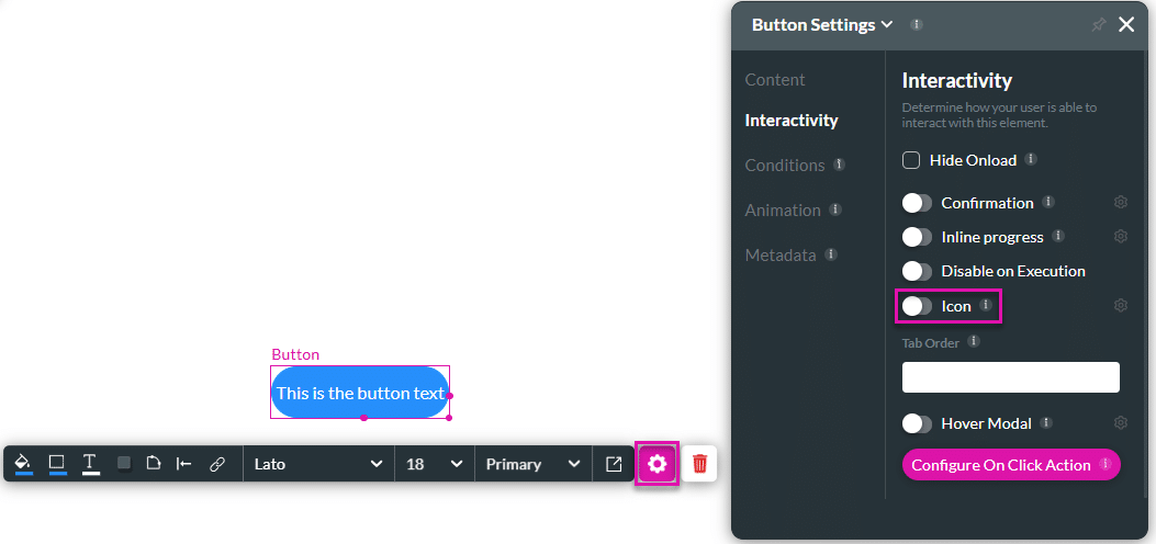 Add an icon to a button to customize your content with Titan, in just a few clicks.