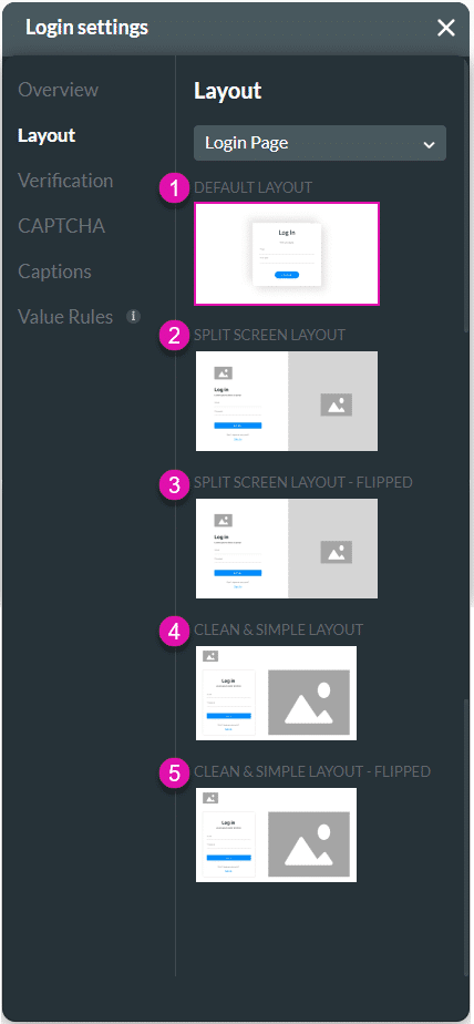 Determine the layout of the log in, verification and/or registration page for a SmartV web project. You can add images and/or logos in a number of ways to make your pages unique and in line with your company branding.