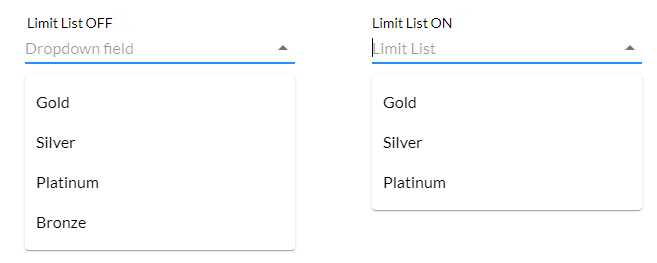 Use the Limit List option to limit the number of results in your drop-down list. This option is also available for the lookup element.