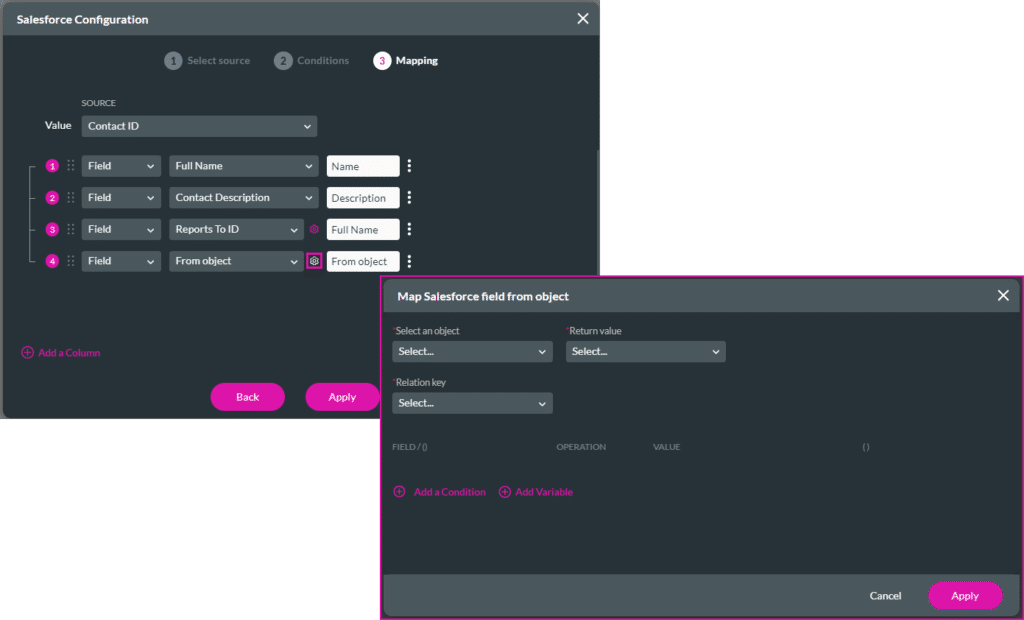 When creating or editing a power table, you can include fields from the selected Salesforce object.