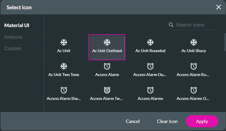 You can set the styling of the icon using the options on the right of the pop-up screen. For instance, you can change the size, color, and margin of the icon: